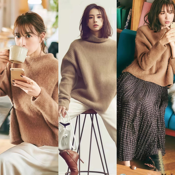 毛衣也是冬日必备,单穿叠穿都好看,修身款式的摩卡棕毛衣,可以叠穿在同色系的大衣里面。偏浅一点的摩卡棕毛衣,搭在棕色衬衫的胸前,打个结更有层次感。