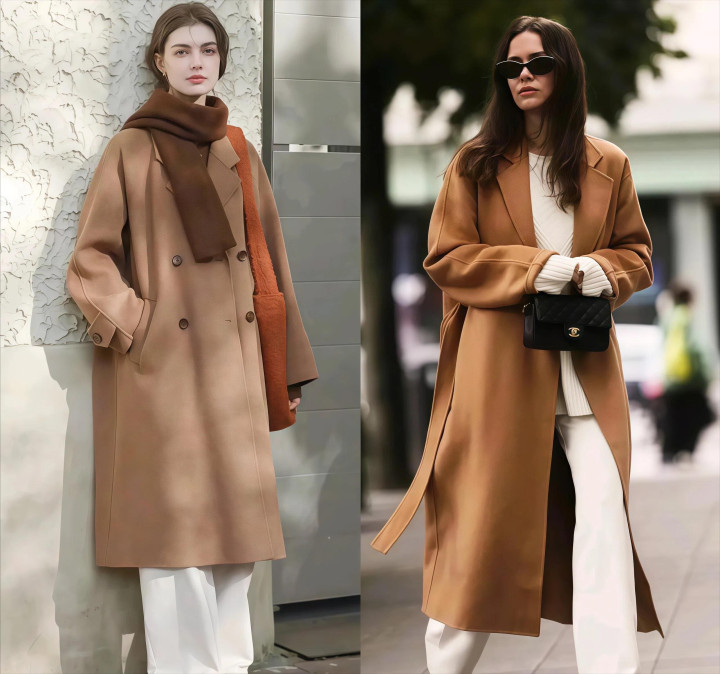 寒冬来临,摩卡通大衣成为了“温暖使者”,面料细腻有支撑性的羊绒材质,上身的那一刻,暖意来袭。摩卡棕大衣和白色直筒裤的适配度极高,再搭配上同色系的围巾、包包,既有轻盈感,又具备和谐性。