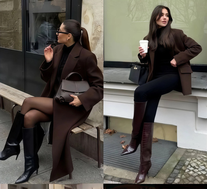 4.摩卡棕+黑色,初冬的优雅气质密码