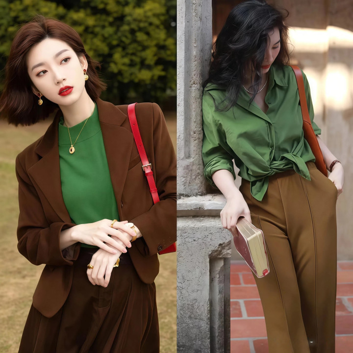 当森林绿邂逅摩卡棕,就像在森林里点了一杯摩卡,超有氛围感。在初冬金黄的氛围当中,摩卡和绿色的碰撞,带着一丝慵懒的气息,将“复古美学”彻底释放,谁看了不说一声“美”。